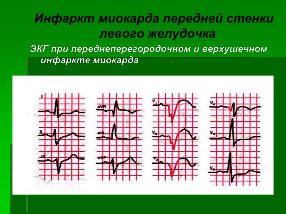 ЭКГ при переднеперегородочном и верхушечном инфаркте миокарда