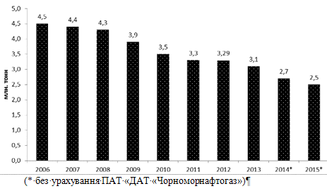 Рис.1.4. Видобуток газу за 2006-2015рр.[8]