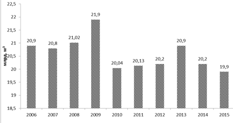 2014 та 2015 роках. В середньому країна щороку забезпечена близько 20 млрд. м3