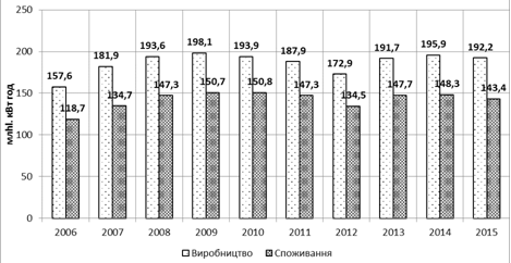 скоротилося на 10,2% порівняно з 2014 р. Відношення виробництва та споживання