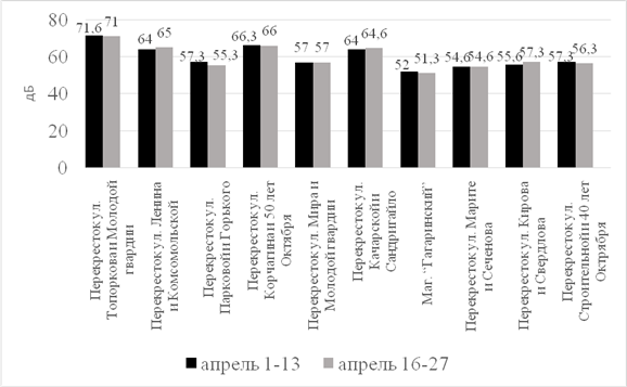 апреля в будние дни. Замеры шума проводились в часы пик движения автомобильного