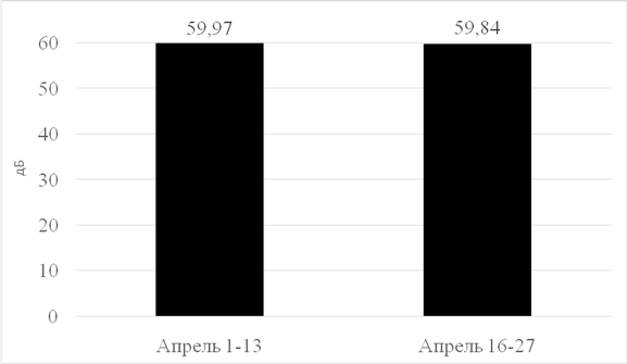 с рисунком 15. В период времени с 16 по 27 апреля уровень шума снизился на 0,13 дБ.