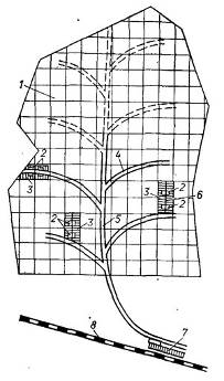 веткам; 7 - нижний склад; 8 - дорога общего назначения