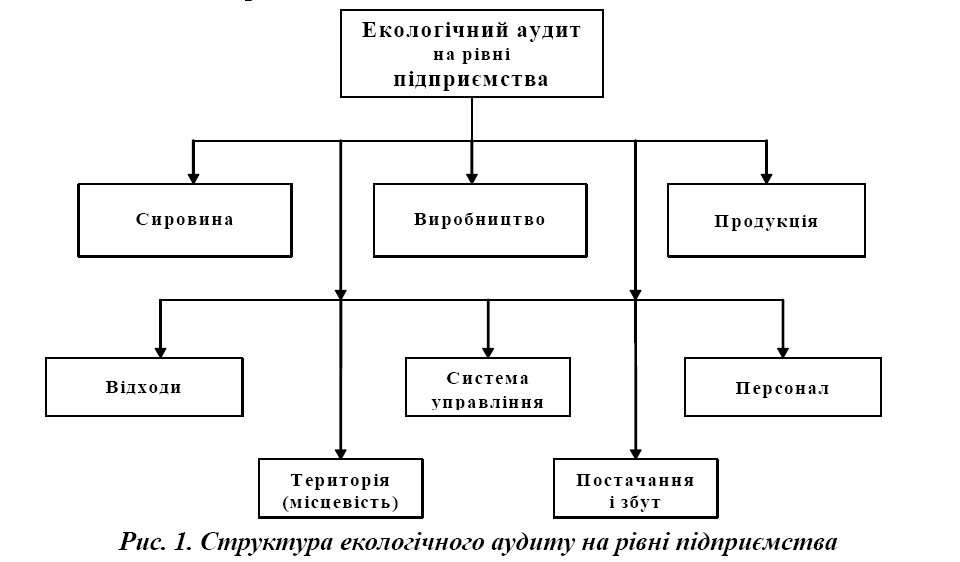 предмет екологічного аудиту (повітря, вода, землі, енергоспоживання, відходи).