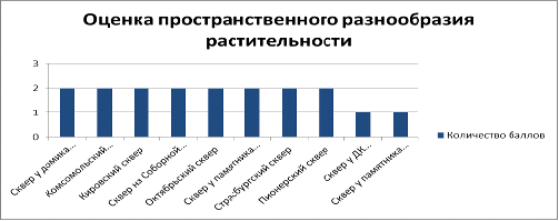 пространственное разнообразие растительности. Все скверы, кроме сквера у ДК