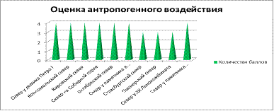 уровень оценки всех десяти скверов, где минимальное значение равно 0, а