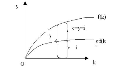 сукупний попит задається через характеристики споживання (с) та інвестицій (i) в розрахунку на одиницю праці: у=с+і, де с=С/L, а і=І/L. Враховуючи, що споживання є пропорційним до доходу і залежить від норми заощадження (s), тобто с=(1-s)·у, отримаємо y = (1-s)·y+і. Звідки: і=s·у і=sf(k). В умовах рівноваги інвестиції дорівнюють заощадженням і є пропорційними доходу. Чим більший показник k, тим більшим буде обсяг виробництва f(k) і тим більшими будуть інвестиції і.“Золоте правило” Р.Солоу полягає в тому, що при визначенні норми заощаджень критерієм повинна бути максимізація добробуту суспільства, тобто якнайбільше споживання (С). Вивченню та виправленню зазначених недоліків і обмежень моделі Солоу присвячена сучасна теорія економічного зростання, яка почала розвиватися на початку 70-х рр. і побудована на емпіричному аналізі факторів економічного зростання.