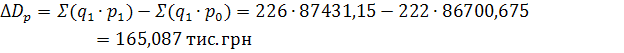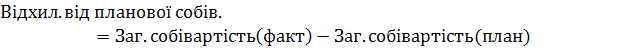 Абсолютне відхилення загальної суми витрат розрахуємо як