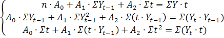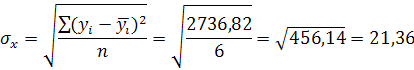 За допомогою даного рівняннями знайшли прогнозні значення обсягу реалізації