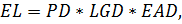 где PD - вероятность дефолта, LGD - доля невозвратного убытка при дефолте, а EAD - потери от дефолта.