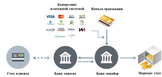 Упрощенно схему работы эквайринга можно представить в виде рисунка 1.