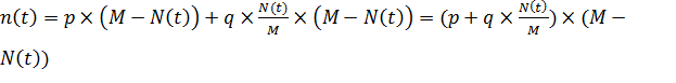 где n(t) = количество принявших новшество в момент времени t,= потенциал рынка, (t) = суммарное число принявших новшество, = коэффициент инновации, = коэффициент имитации
