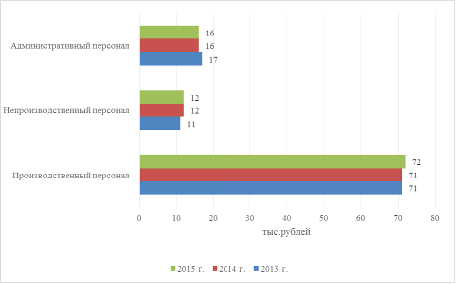 За исследуемый период общая численность персонала изменилась незначительно. Так, в 2013 г. она составляла 99 человек, в 2014 г. - 98 человек, в 2015 г. - 100 человек. Увеличение произошло за счет производственного и непроизводственного персонала.