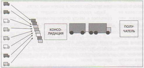 проходит в 2 зтапа: переконсолидация. Пришедшая машина с товаром разгружается в