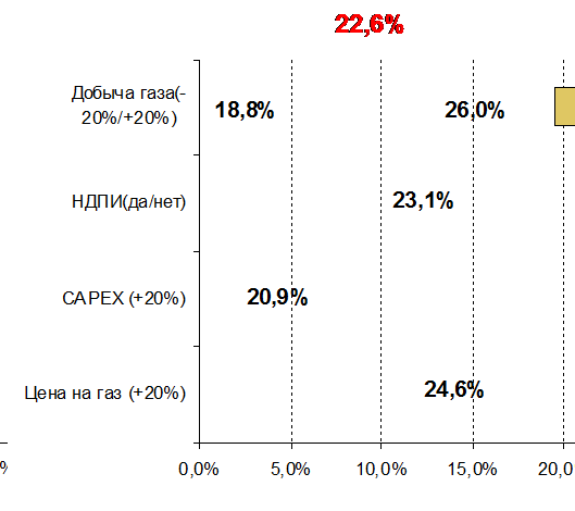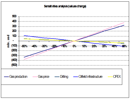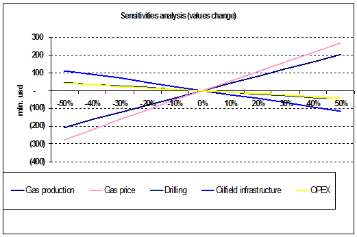 Таблица 6.5 Результаты анализа чувствительности проекта при продаже газа на экспорт
