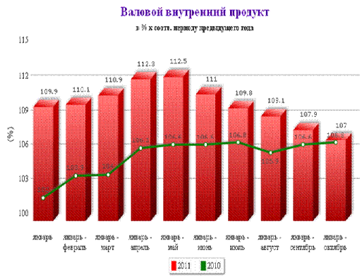 Итоги социально-экономического развития республики за январь-август 2011 г. характеризуются плавным замедлением экономического роста, начавшимся в июне. Это является следствием проводимой Правительством политики по сужению внутреннего спроса и лежит в плоскости устранения накопившихся в экономике структурных диспропорций. Большинство важнейших параметров, включая производство ВВП, превышают годовые прогнозные значения. Однако по отдельным из них по сравнению с итогами семи месяцев наблюдается замедление темпов роста.