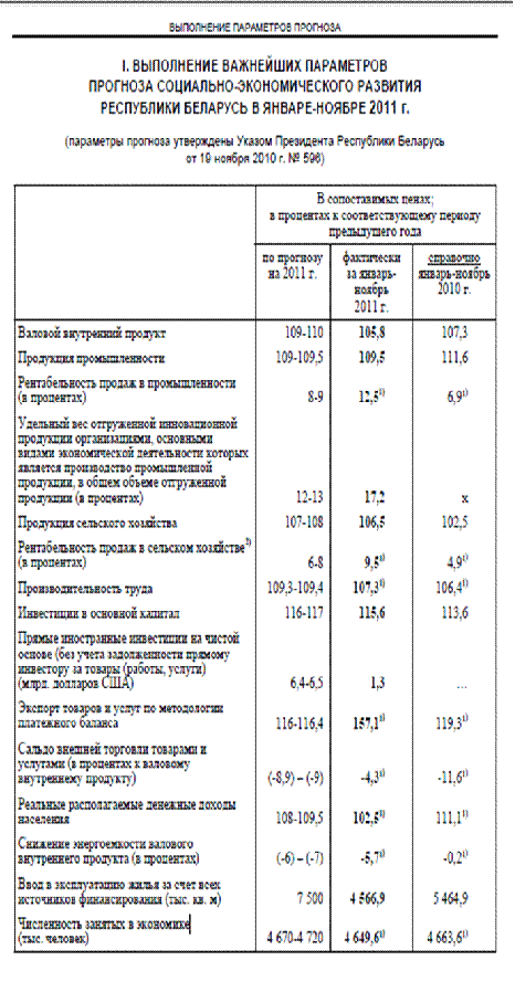 Итоги социально-экономического развития Республики Беларусь за январь-октябрь 2011 г. по сравнению с аналогичным периодом 2010 г. представлены в приложении Б.