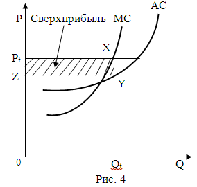 На этом рисунке показано, что равновесные цена и объём выпуска в коротком периоде равны соответственно Pf и Qf. При данной цене конкурентная фирма достигает объёма выпуска на уровне Qf (P = MC) и получит сверхприбыль (Pf XYZ).