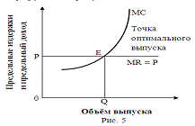 Предельным условием максимизации прибыли является такой объём выпуска продукции, при котором цена равняется предельным издержкам.