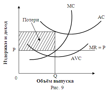 издержек, т.е. фирма способна минимизировать свои убытки (рис. 9);