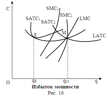 соответствующем минимуму долгосрочных средних издержек (точка М). Но