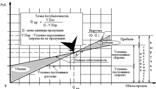 опережают темпы уменьшения объемов продаж. Определение точки безубыточного