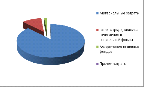 Основную долю в себестоимости продукции занимают материальные затраты в 1 квартале этот показатель составлял - 87,6%, во втором - 84,4 %, в третьем 80,5%, в четвертом - 79,8%