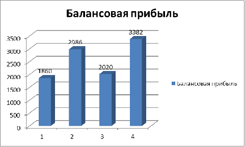 Из таблицы видно, что прибыль в 1 квартале составила 1860 тыс. руб., во втором квартале 2986 тыс. руб., в третьем квартале 2020 тыс. руб., в четвертом квартале 3382 тыс. руб.