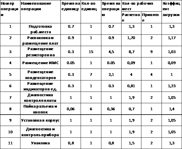 .1 Расчет поточного производства