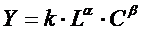 · α, β - коэффициенты эластичности результатов от затрат (α + β = 1).