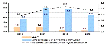 Рис.2. Диаграмма прогноза экономического роста в РФ на 2012-2013 год.