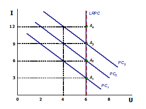 · в результате в долгосрочном периоде кривая Филлипса вырождается в вертикальную прямую.