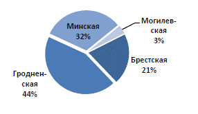 тыс. т. В основном производство сахарной свеклы сосредоточено в Гродненской (44%) и Минской областях (32%).