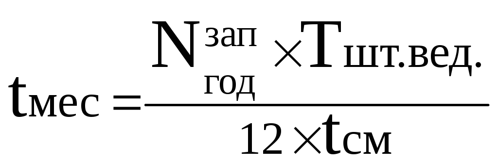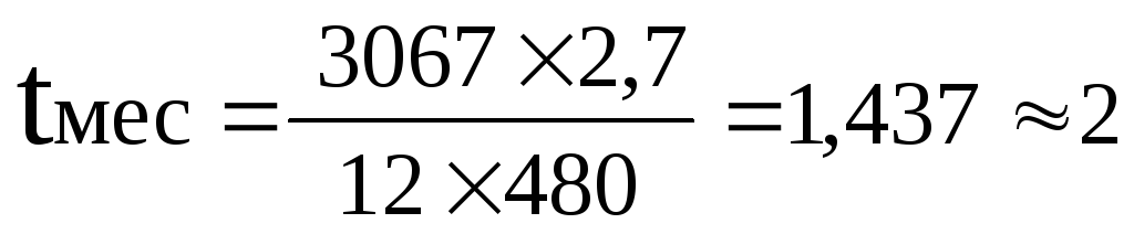 Для расчета оптимального размера партии запуска детали определяется длительность выполнения месячной производственной программы tмес по формуле: