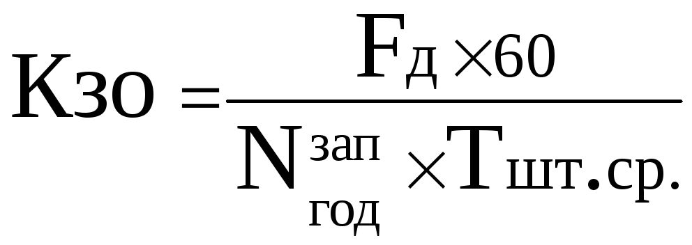 Для обоснования типа производства определяется коэффициент закрепления операций Кзо по формуле: