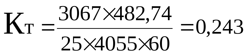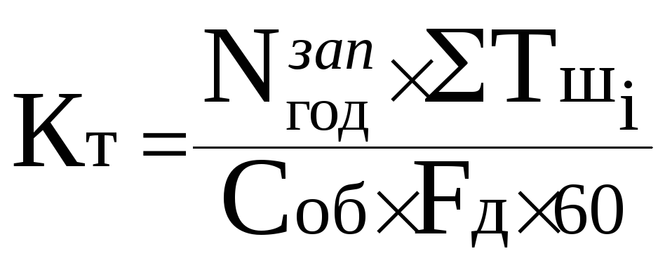 Приведённая производственная программа определяется по детали-представителю с учетом коэффициента трудоемкости Кт., который показывает долю трудоемкости заданной детали от трудоемкости всей годовой программы участка. Коэффициент трудоемкости определяется по формуле: