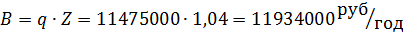 Пб = q × (Z - s) = 11475000 × (1,04 - 0,5) = 6196500 руб./год. (10)