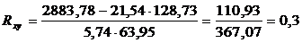 Коэффициент корреляции равен 0,3 ; это значение находится в интервале от 0 до 0,33, значит говорит о том, что связь между себестоимостью зерновых и урожайностью прямая слабая.