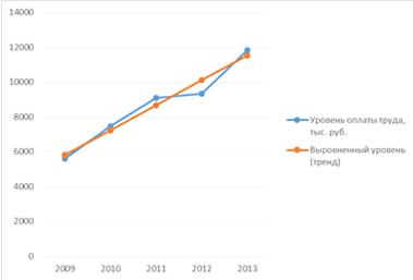 равен 3060,6 тыс. руб., т.е. в среднем с 2009 по 2013 гг. уровень оплаты труда