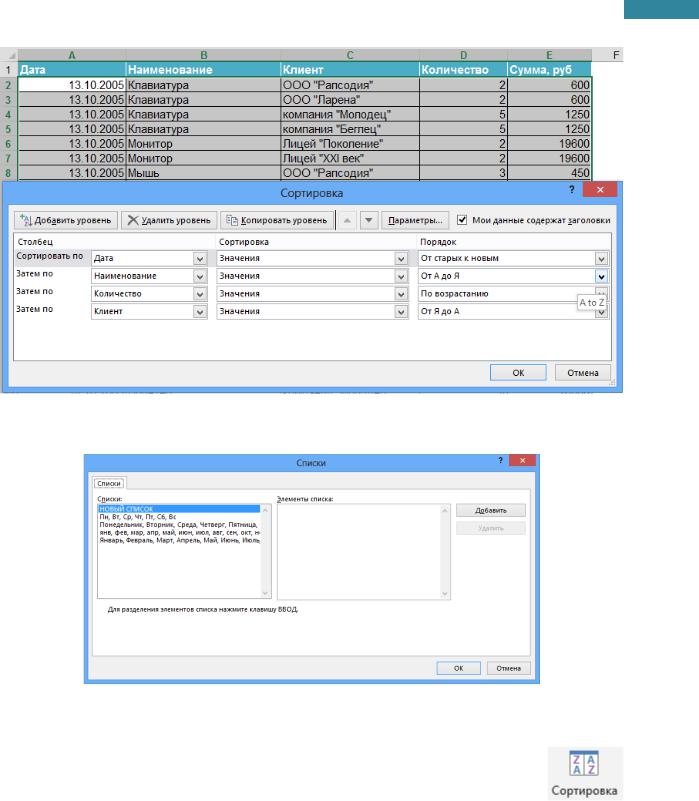 Можно выполнять сортировку данных по тексту (от А до Я или от Я до А), по числам (от наименьших к наибольшим или от наибольших к наименьшим), а также по датам и времени (от старых к новым или от новых к старым). Сортировку можно выполнять как по данным одного столбца, так и по нескольким. Можно также выполнять сортировку по настраиваемым текстовым спискам или по формату, включая цвет ячеек, цвет шрифта, а также по значкам. Большинство сортировок применяются к столбцам, но возможно также применить сортировку к строкам.