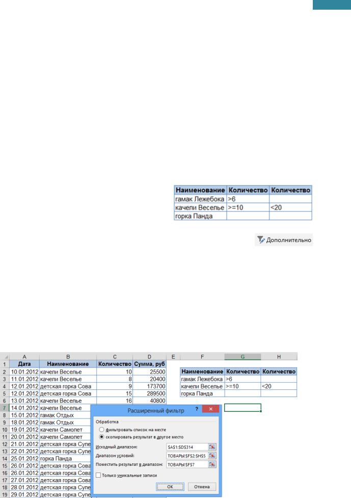 (условия фильтрации) [Criteria range] вместе с названиями столбцов (заголовками).