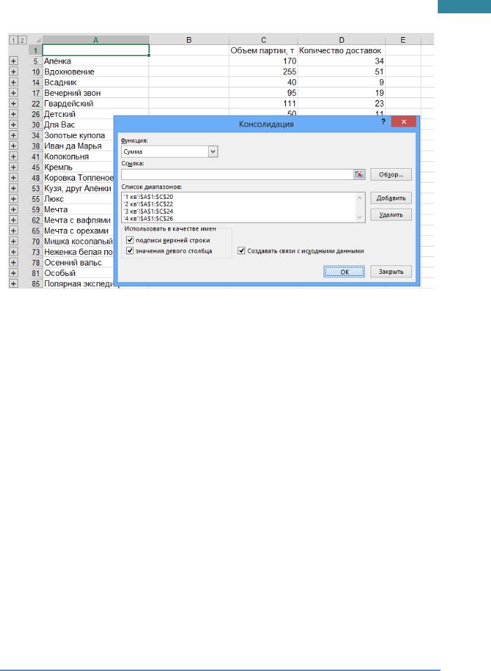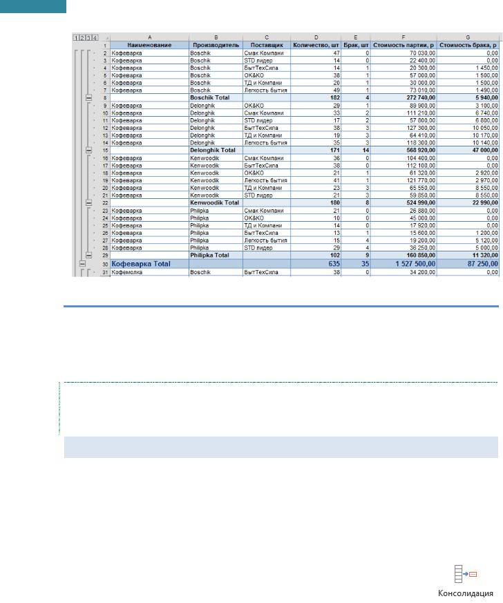2.На вкладке Данные [Data], в группе Работа с данными [Data Tools], выбрать Консолидация
