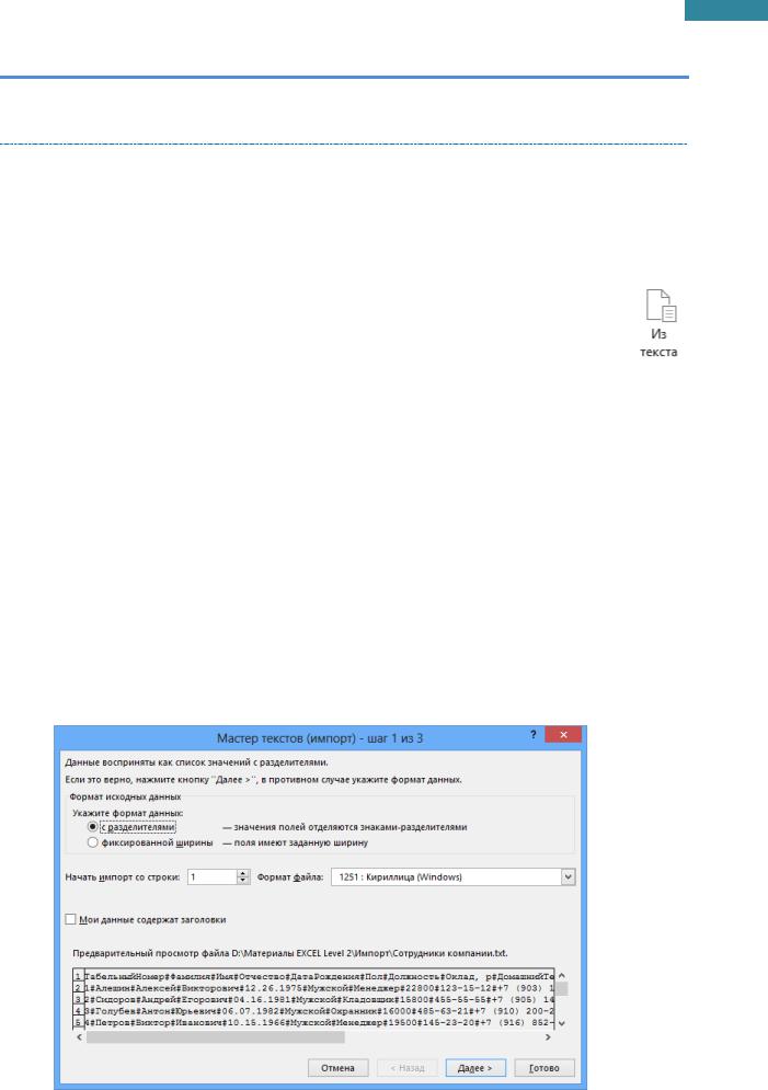 4.В диалоговом окне Мастер текстов (импорт) – шаг 1 из 3 [Text Import Wizard – Step 1 of 3]