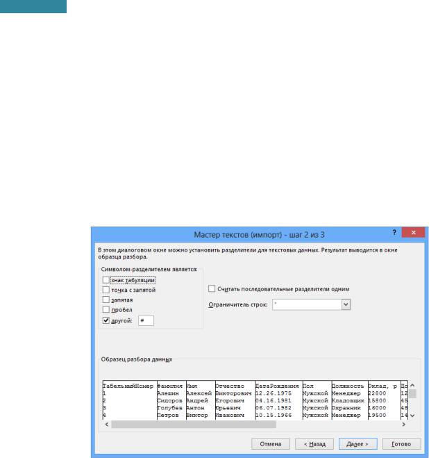 В открытом файле 02_7 Импорт данных, на лист ЗАДАНИЕ2 импортировать данные из текстового файла Сотрудники компании.txt из папки Импорт. Расположить указанные данные, начиная с ячейки A1.