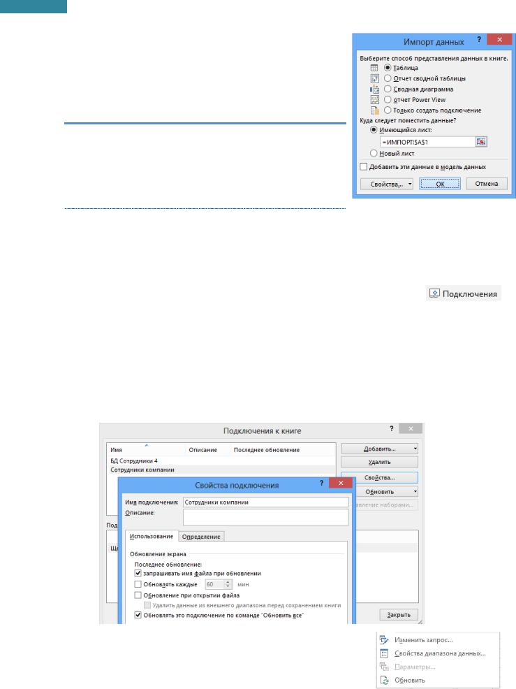 2.Выделить имя источника данных в окне Подключения к книге [Workbook connections] и выбрать команду: