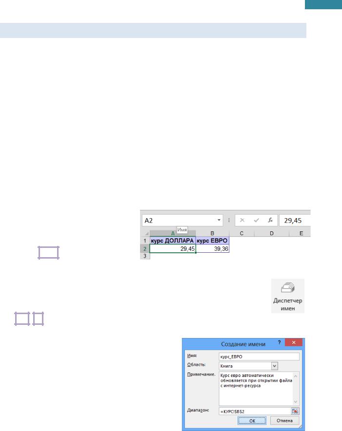 Например, формула =Цена€*курсЕвро гораздо понятнее, чем формула =C2*курс!$B$2.