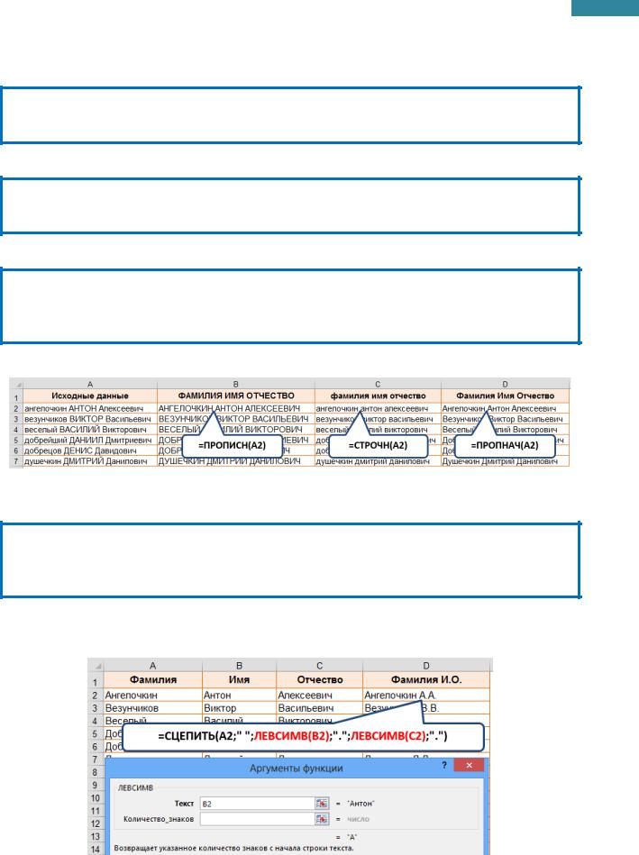 ПРОПИСН(Текст) – делает все буквы в строке текста прописными.