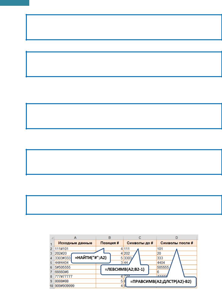 ПРИМЕР: Из исходных данных получить символы до # и символы после #.