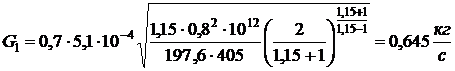 - массовый секундный расход газа,