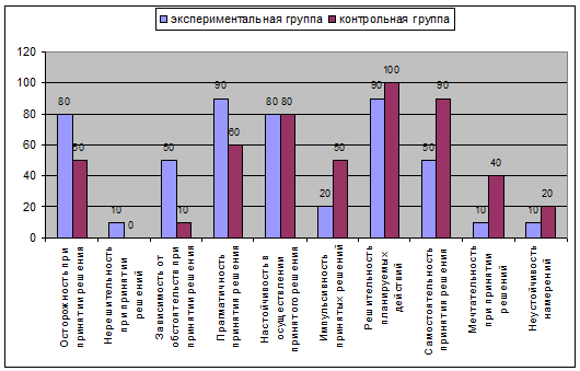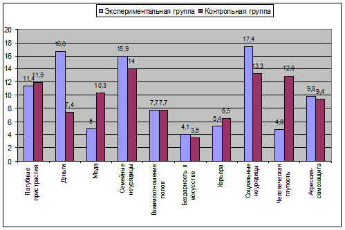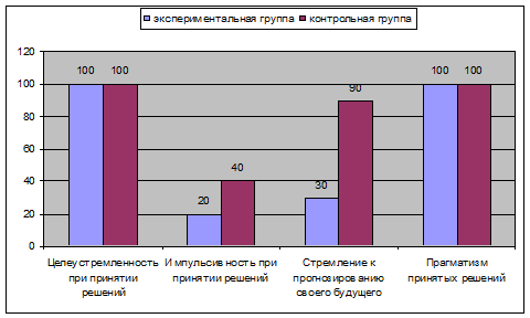 различия между экспериментальной и контрольной группами по таким критериям как